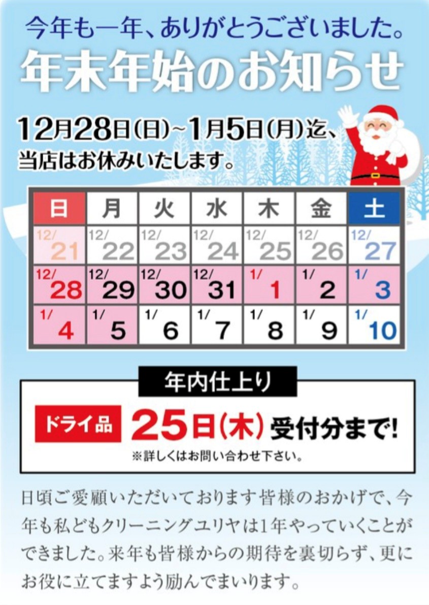 いつもクリーニングユリヤをご利用いただき、ありがとうございます。
